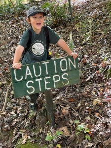 The trail consisted of natural surfaces, boardwalks, and some pavement. The rating for the trail is moderate, but for Coleman and I it was rather easy. As you can see we wound through a forest of trees and through tunnel and for my grandchildren over the tunnel as well.
