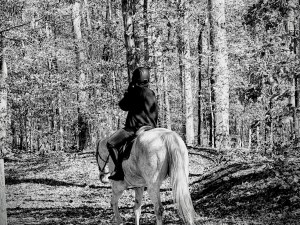 RED Jacket, RED backpack, RED on Trail Signs, RED Horse Blanket, and a RED car at Anne Springs Close Greenway