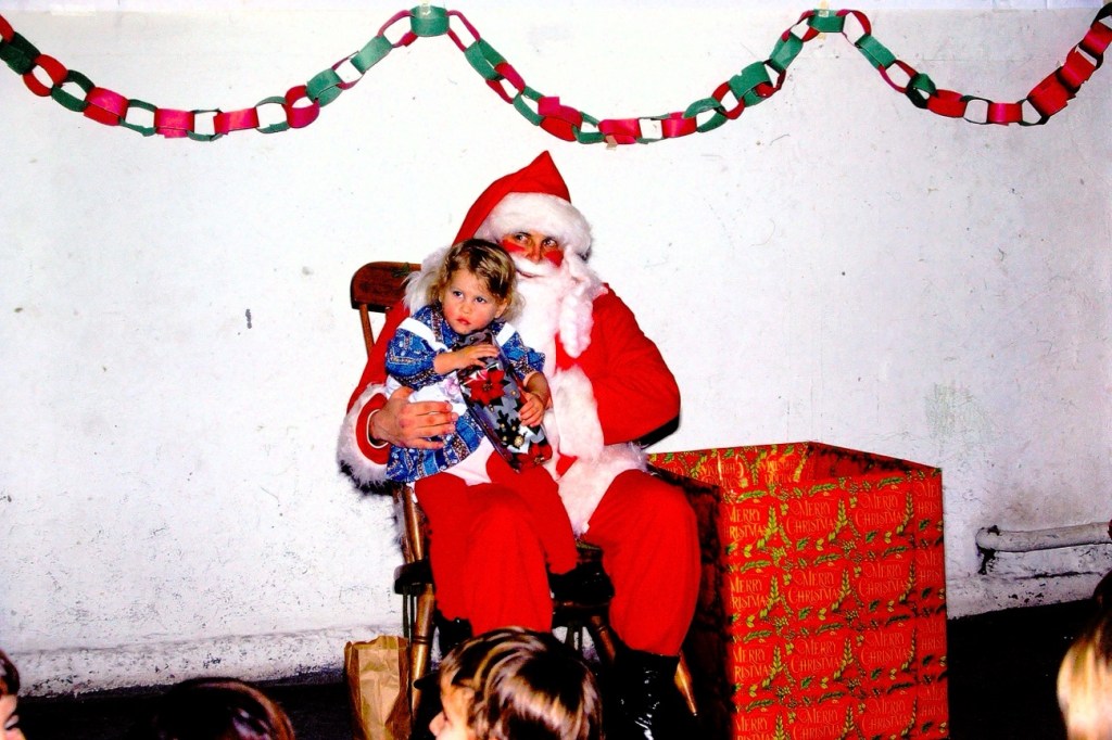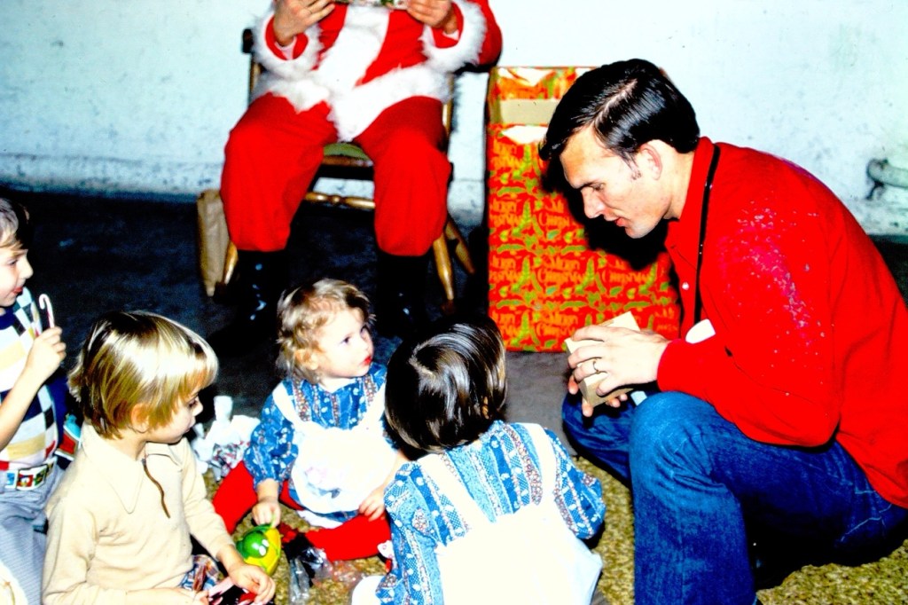Speaking of family, these photos with Santa Claus were taken in Germany in December of 1978. The first photo shows Santa’s arrival. The next photo shows my niece, Jennifer, on Santa’s lap. The third photo is of my niece, Sherry, on Santa’s lap. And the fourth and last photo is of my brother with his daughters and other children (probably at a Church Christmas party). [My brother was stationed in Germany while in the U.S. Air Force.]