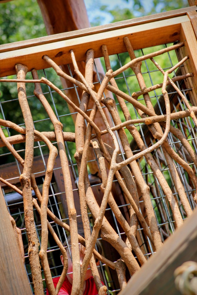 This post was taller than any of us are, so it took two of us to help her up onto the post.