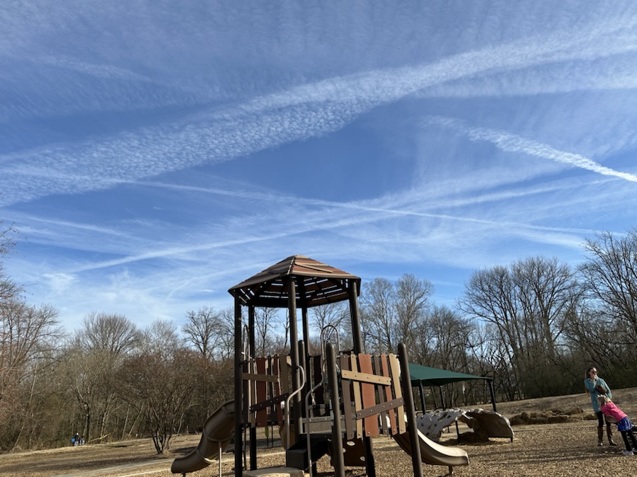 The other day it was warm, but cloudy and windy. It was raining lightly when Coleman got off the school bus. We waited a half hour, the rain stopped, so we ventured down to Riverside Park and Greenway for him to play in the sand by the South Fork Catawba River.