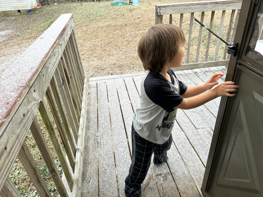 As you may have noticed, Coleman managed to scoot past me without proper attire to see our first drops of snow ❄️. Don’t worry, I didn’t let him stay out for very long with no jacket or shoes.