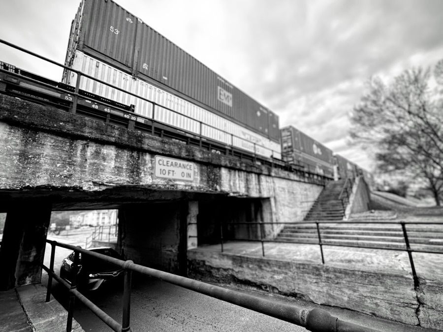 Tunnel with Car passing through under the Train. South Fork Catawba River Coleman Coleman Goat in Neighboring Yard