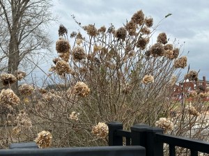 Winter Hydrangea paniculata located at the entrance to Goat Island Park and Greenway.