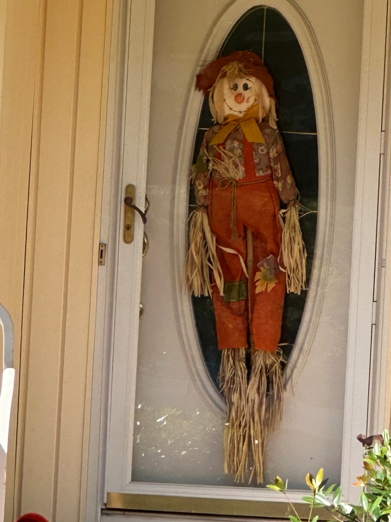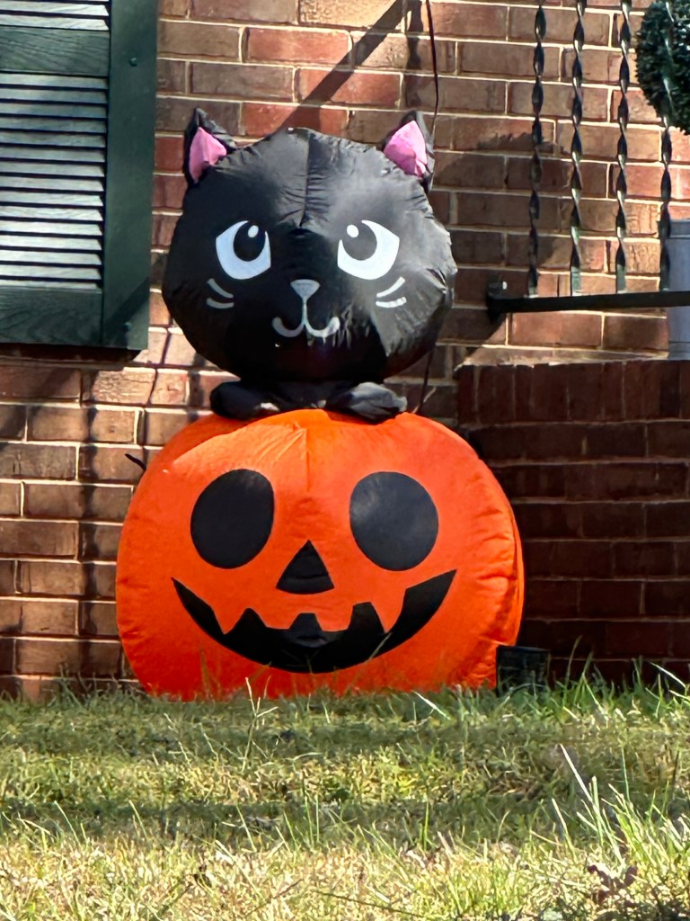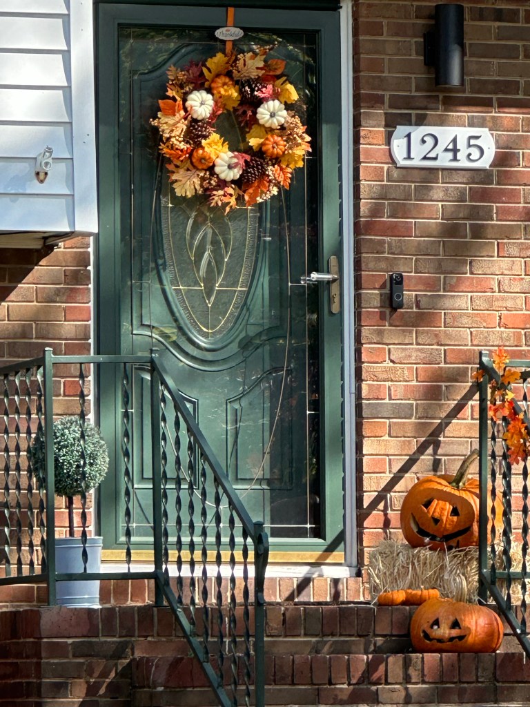 While taking a long walk through the neighborhood; we noticed several houses that were decorated with fall decorations. Some of the houses were decorated with Autumn decorations while others were already decorated with Halloween decorations. These are a few of the decorations we saw on our walk.