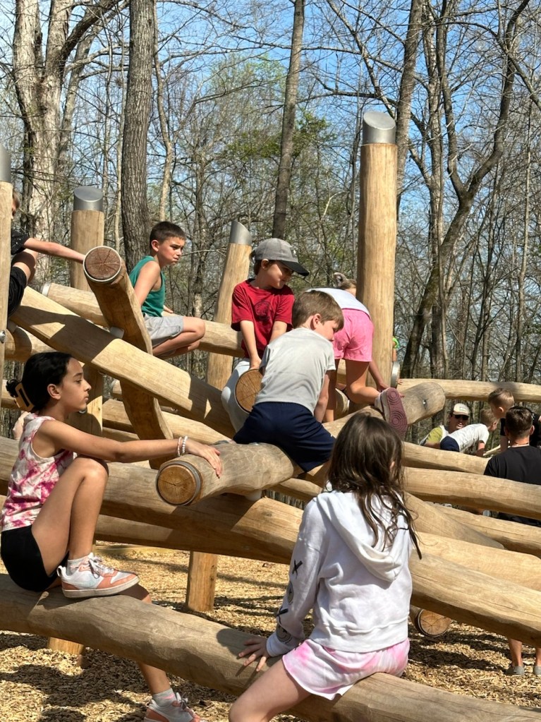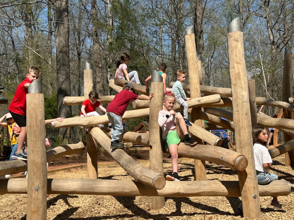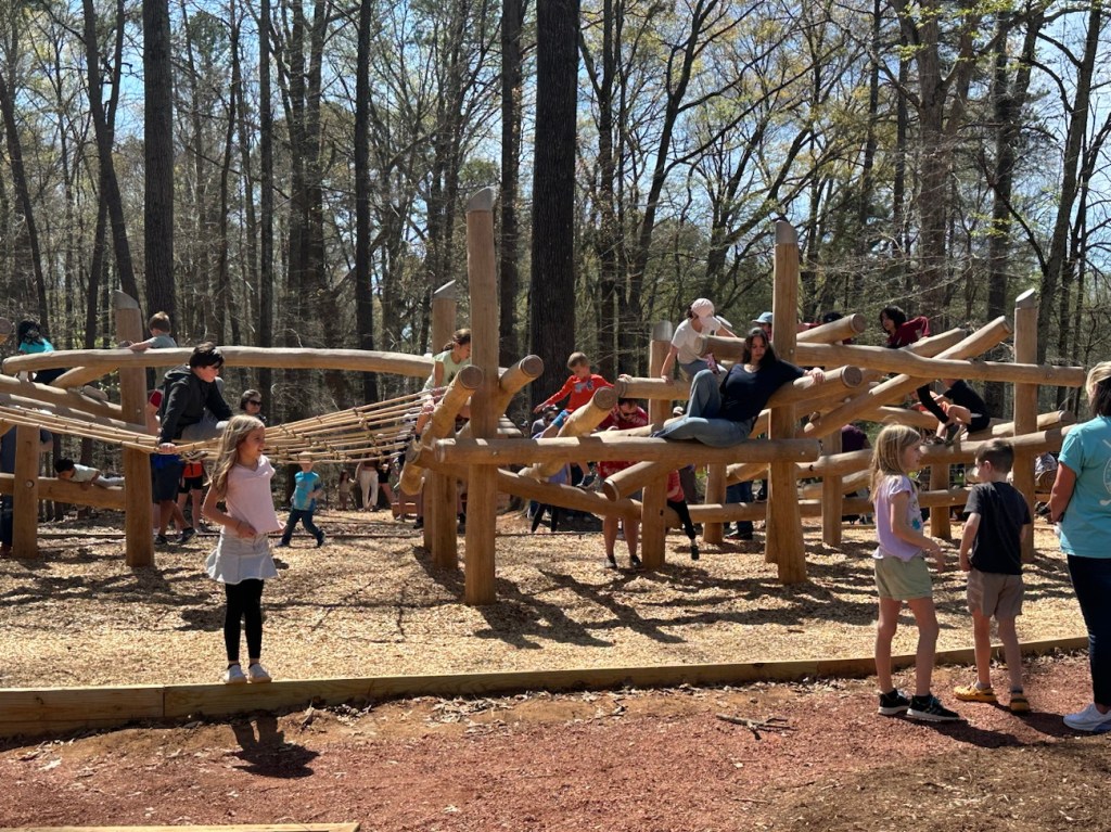 Opening Day for the Schroering Forest Playground was on March 30th. The Playground is a new addition for Anne Springs Close Greenway. Being its opening day list of families came to visit the Greenway the check out the new Playground. Children young and old alike investigated and explored the many different features and structures within the playground.