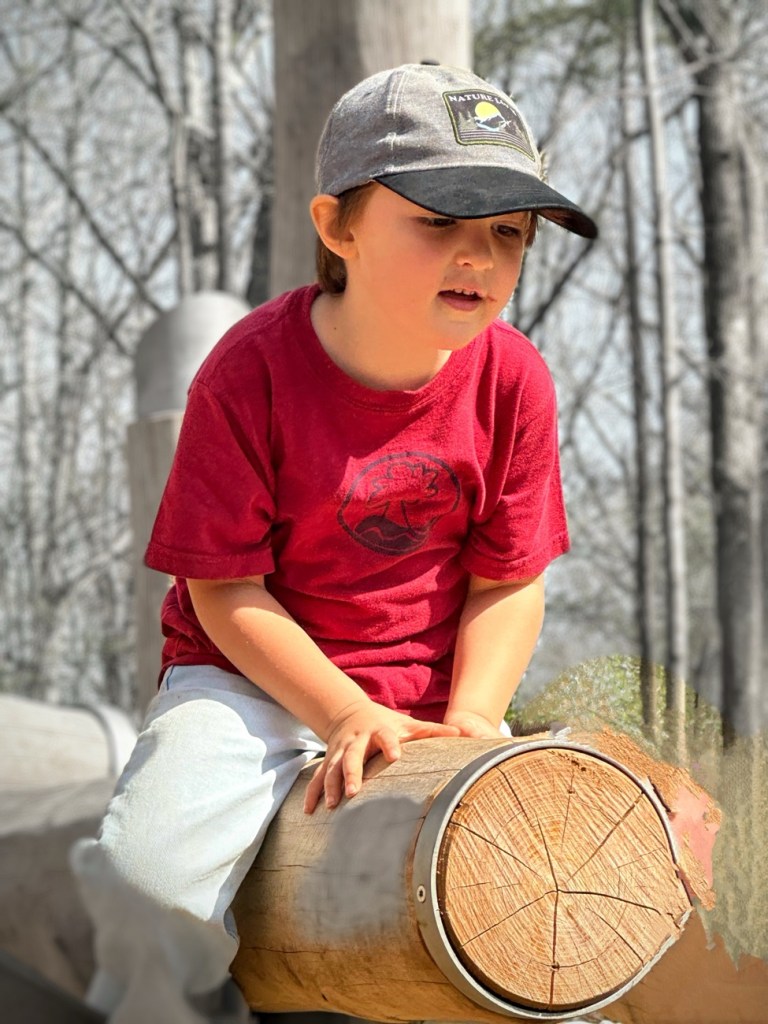 When Coleman and I first walked around the playground and the Climbing Structure it was intimidating with so many people in and on the various structures. Overwhelming especially for Coleman, so we chose to hike around the lake and come back later hoping for fewer children to be in the playground.