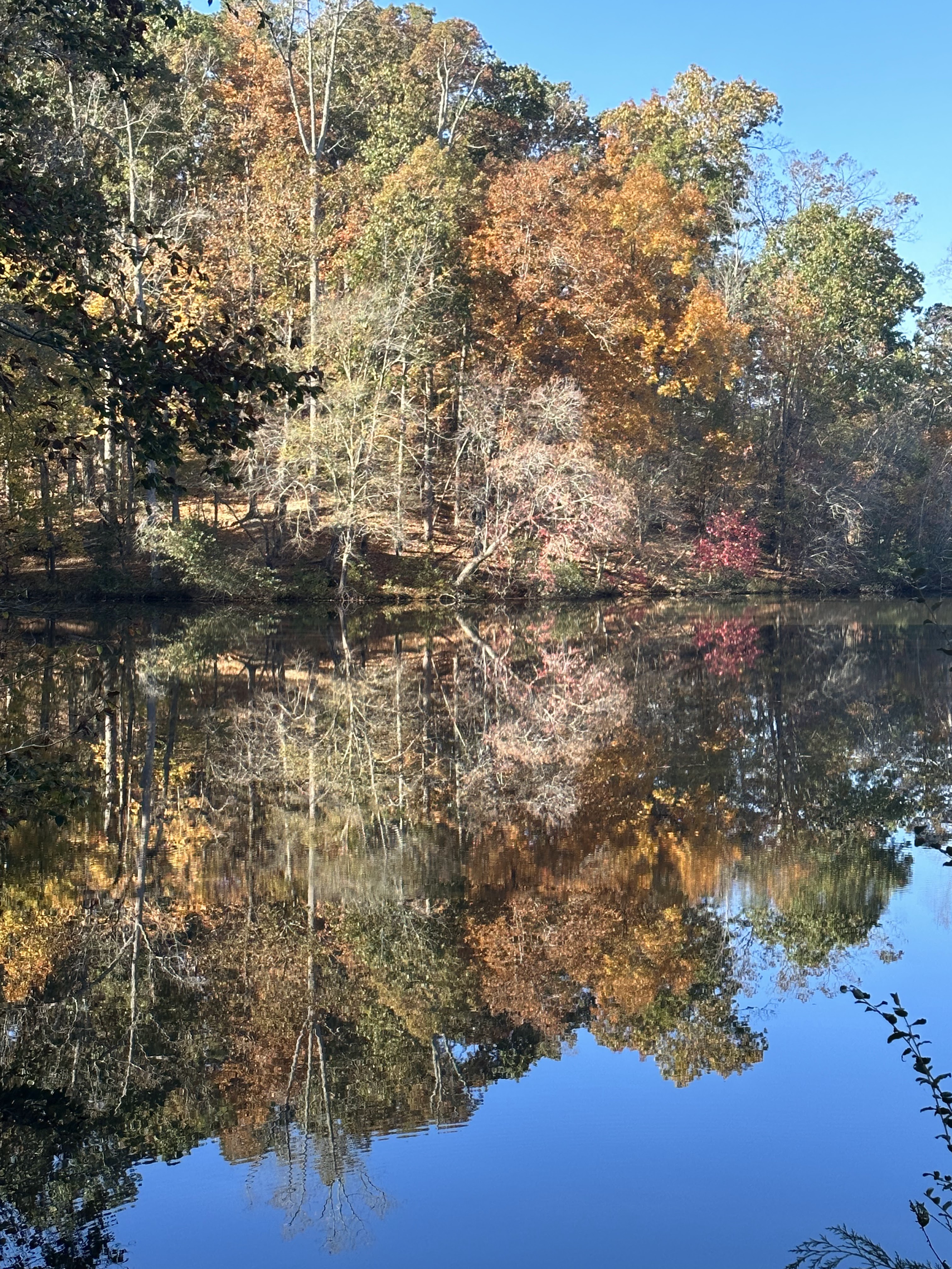 This previously unnamed Pond has recently been given the name of Patterson Pond. It is located at the Children’s Farm accessible from the Greenway Stables Entrance. Beautiful day for observing amazing reflections.