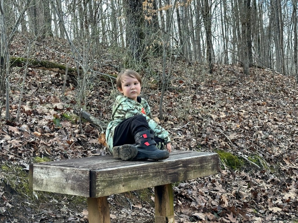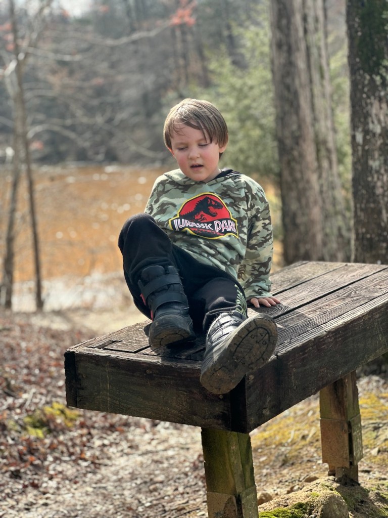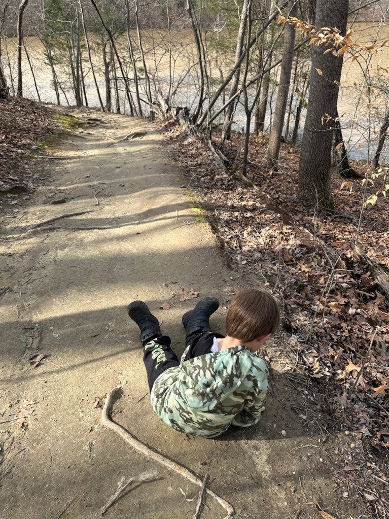 It is almost guaranteed that while Coleman and I are out hiking along a trail, he’ll decide to sit and rest a second or two before moving on. He can choose to just plop on the ground or hop up on one of the benches scattered along the trail. On this day we chose to hike around Lake Haigler at the Greenway.