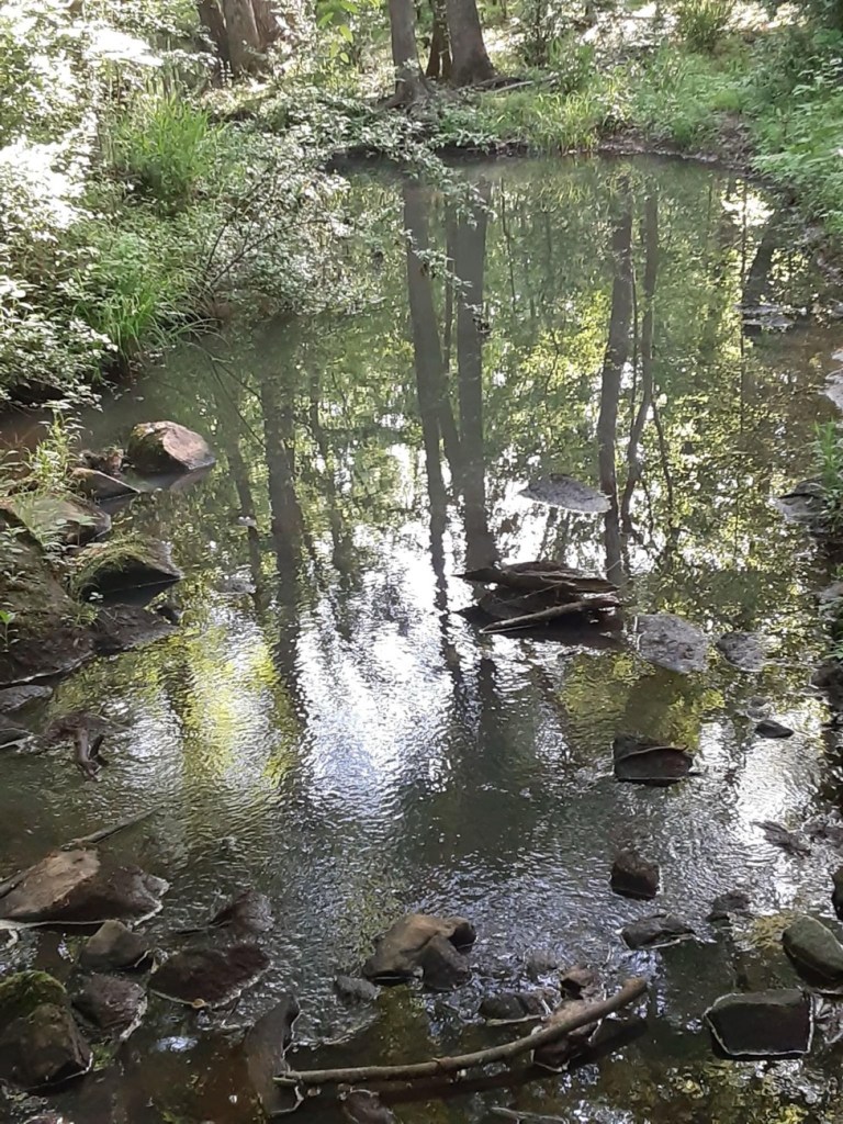 Steele Creek can be seen from several of the Greenway trails while one is hiking. Here you can see the shimmering ripples and the beautiful reflections of the trees.