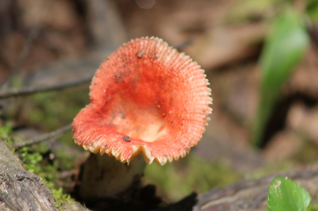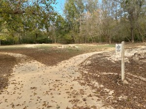 And coming back around to the beginning of the trail, we see some newly grown mushrooms and a couple of disc golf catchers.