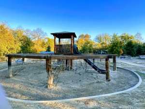 Curb Walking around the playground at Goat Island Park and Greenway.