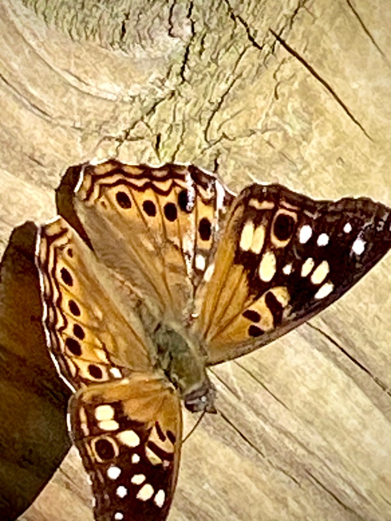 Asterocampa celtis, the hackberry emperor, is a North American butterfly that belongs to the brushfooted butterfly family, Nymphalidae. It gets its name from the hackberry tree. [Camera: iPhone 11 Pro Max]Red-spotted Purple – Limenitis arthemis Limenitis is a genus of brush-footed butterflies, commonly called the admirals. [Camera: iPhone 11 Pro Max]
