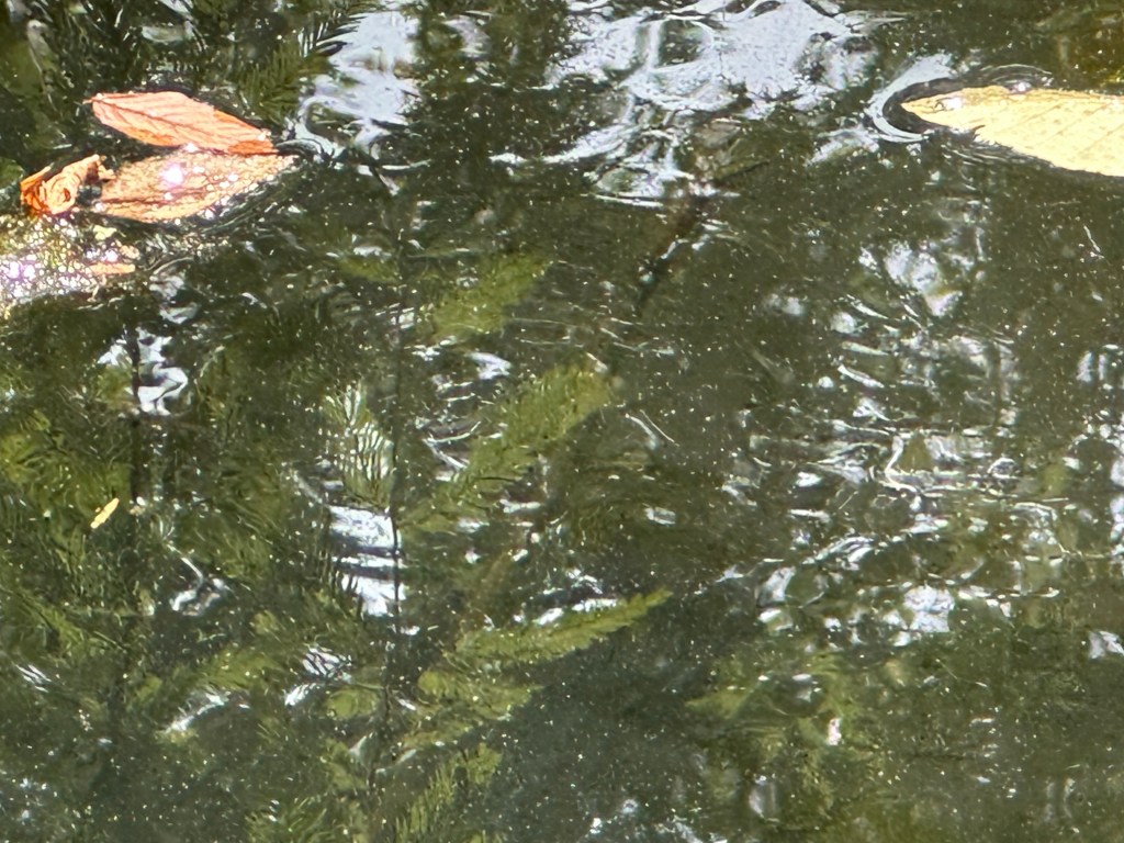 Further down the trail as we hike around the lake I notice what appears to be a shape of a triangle formed with the reflections in the lake.