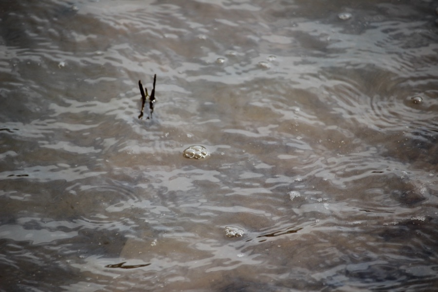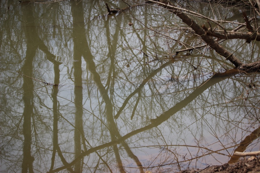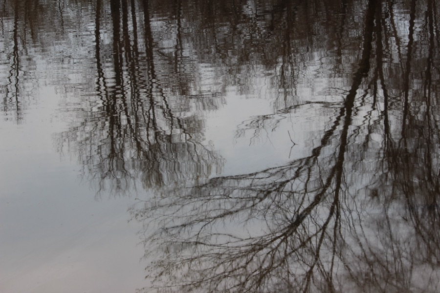 Walking a bit off trail, we saw these three tree stems, limbs, or branches sticking up out of the water. It is always intriguing to see what interesting things we can find along our hikes.