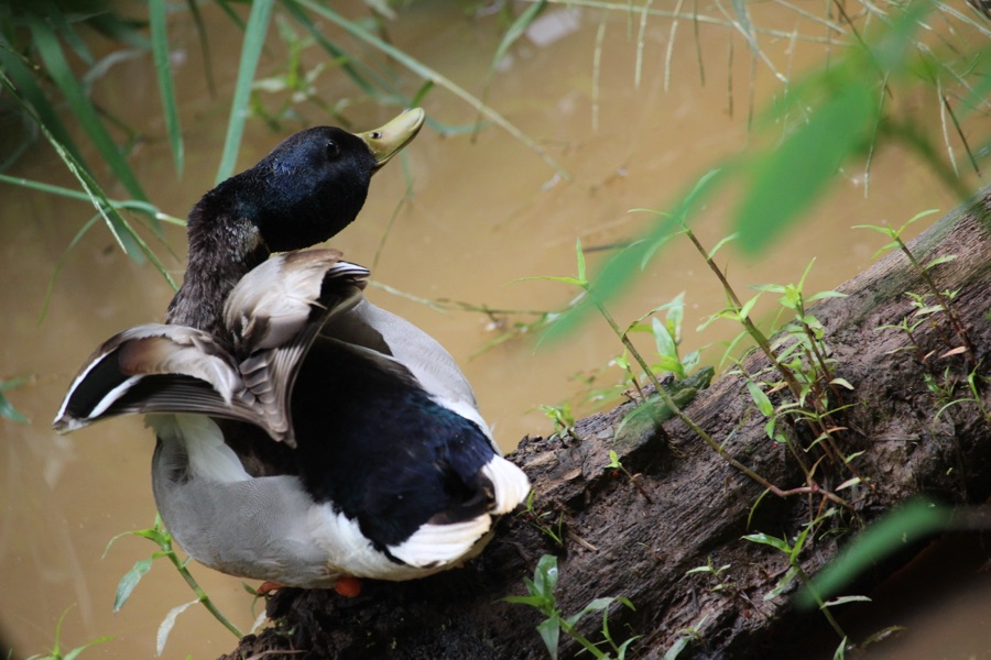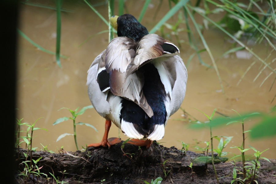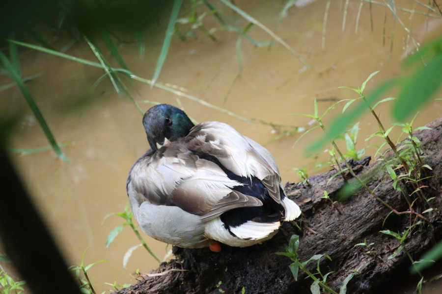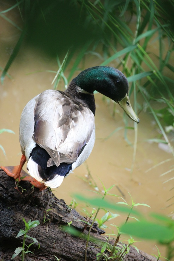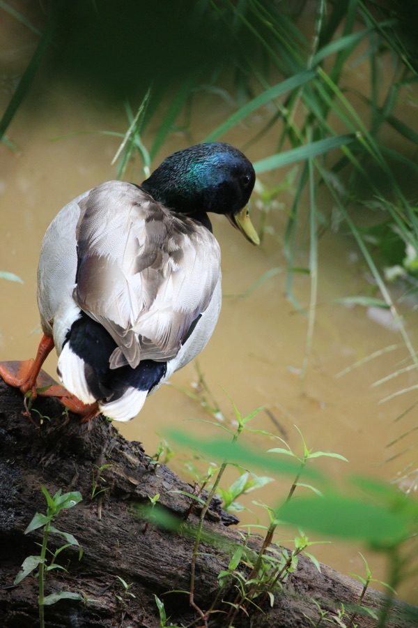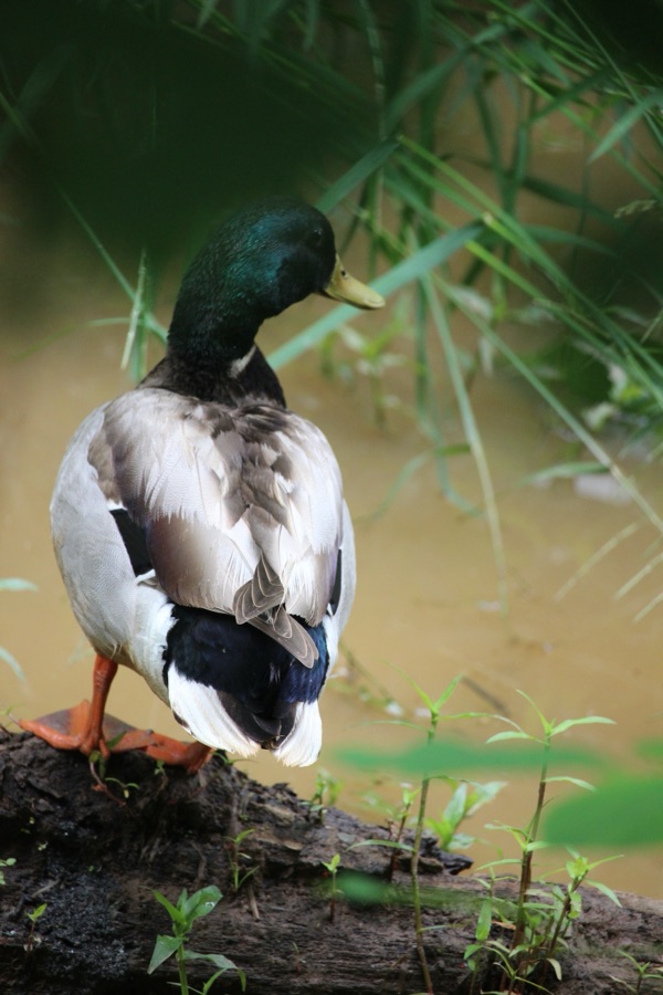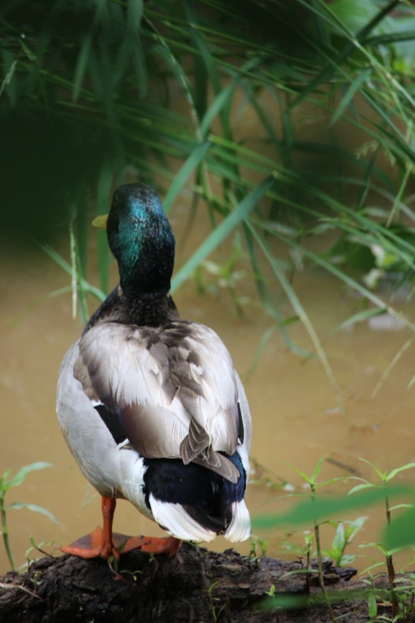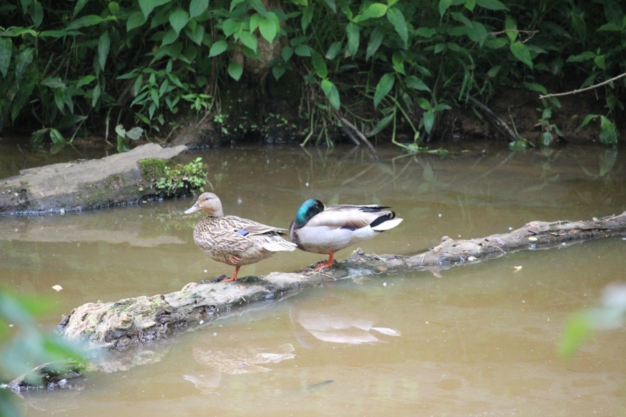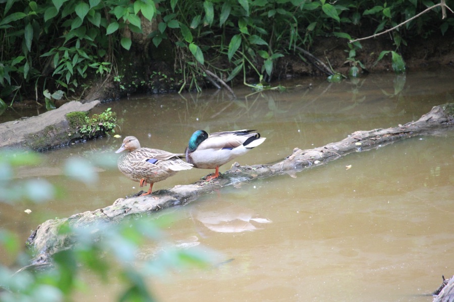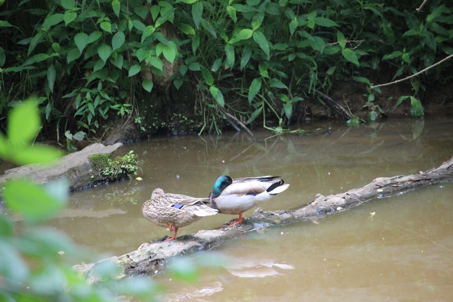 Coleman and I went hiking on the South Fork River Trail, a part of the Carolina Thread Trail, in Goat Island Park and Greenway on Saturday watching a partial day without rainfall (it rained again after we were safely home). While hiking the trail, Coleman and I were looking for the Turtles that often sun themselves on logs in the South Fork Catawba River. What were spotted prior to the Turtles were a pair of Mallards standing on a log checking out the River area. [This was the first time we’ve seen the Mallards in this region of the South Fork Catawba River.]
