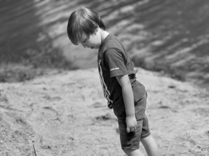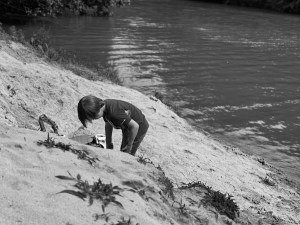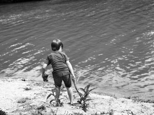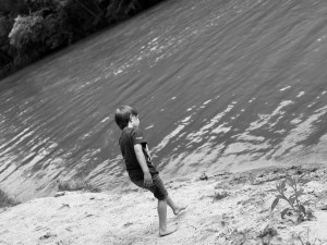 Before continuing on our hike, Coleman decided to throw sticks in the river. He likes to see the splashes that occur when he throws objects into the water.