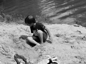 While Coleman was enjoying playing in the sand near the South Fork Catawba River, I changed the setting my iPhone to Muted B & W for some shots and Stage Light Mono for taking Portraits of Coleman at play. Enjoy watching Coleman in his element.