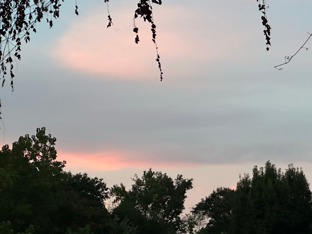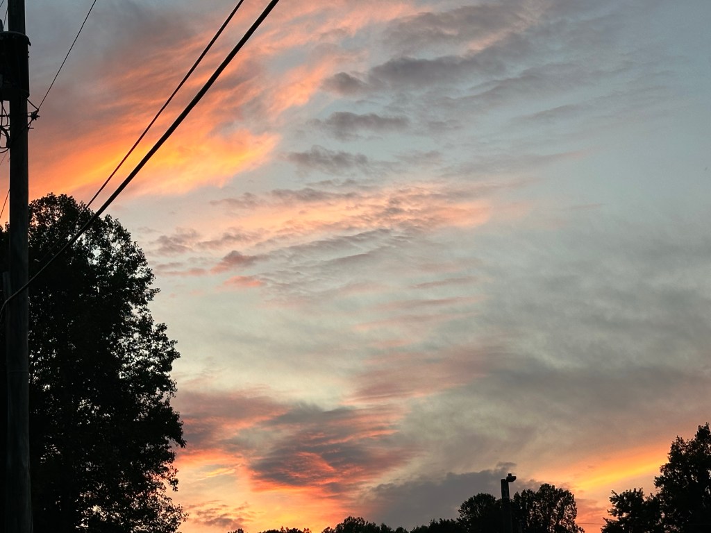 This is our view of the sky as my grandson and I took Chewbacca (the dog) for a walk through the neighborhood behind where we live.