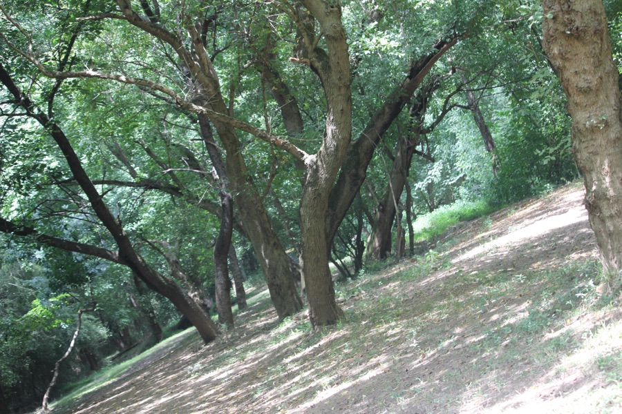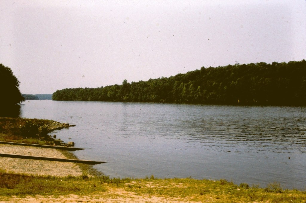 Walking alongside the South Fork Catawba River we gaze over the river and notice the lines of the trench leading to the river and in the tree on the riverbank.