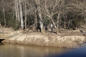 Looking across the river at another trail, we spot a small group of visitors checking out the fishing access.