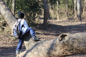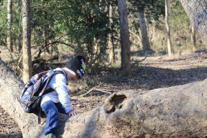 While hiking along the trail Coleman spots a downed tree and decided to climb up And investigate. He hence Pulls Up a Seat waiting for me to catch up.