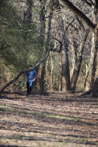 Coleman and I went hiking along the Disc Golf Trail at Goat Island Park and Greenway before the freezing cold weather it our area. The Disc Golf Trail is a natural dirt trail, mostly smooth with some tree roots and lots of leaves this time of the year.