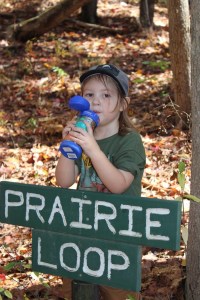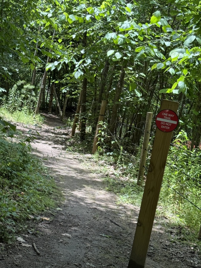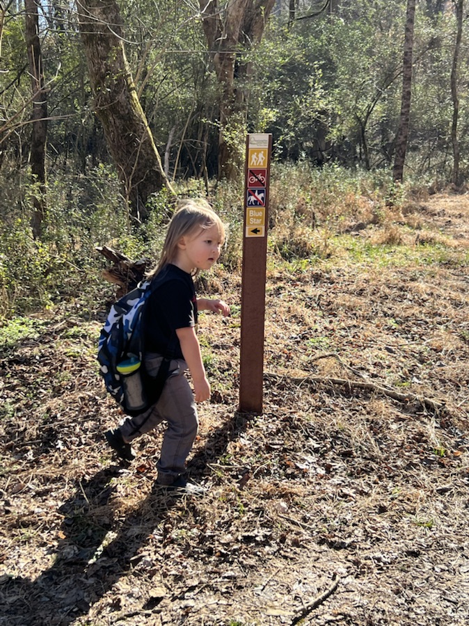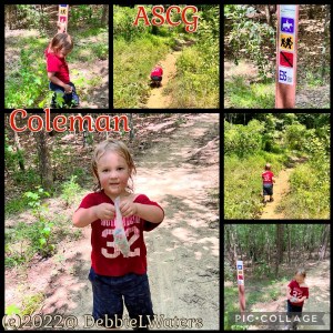 Coleman wearing RED on the dirt trails. Notice the RED on the Trail Signs.