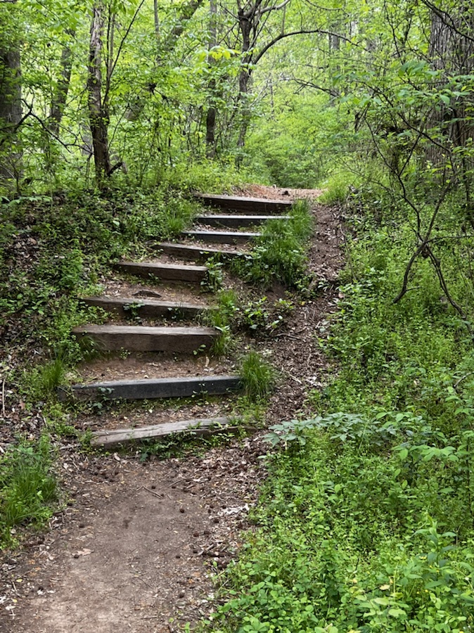 Steps on Haigler Loop Trail in Anne Springs Close Greenway Fort Mill, South Carolina