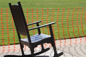 As we move along the Disc Golf Trail the lines in the disc golf catcher can be readily seen. Looking up ahead is the fence line with both vertical and horizontal boards.