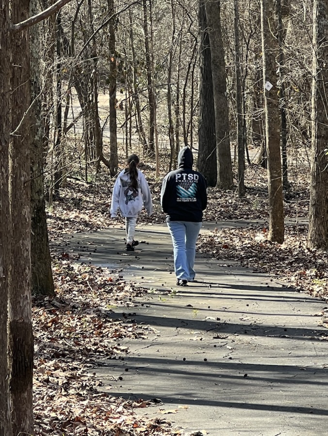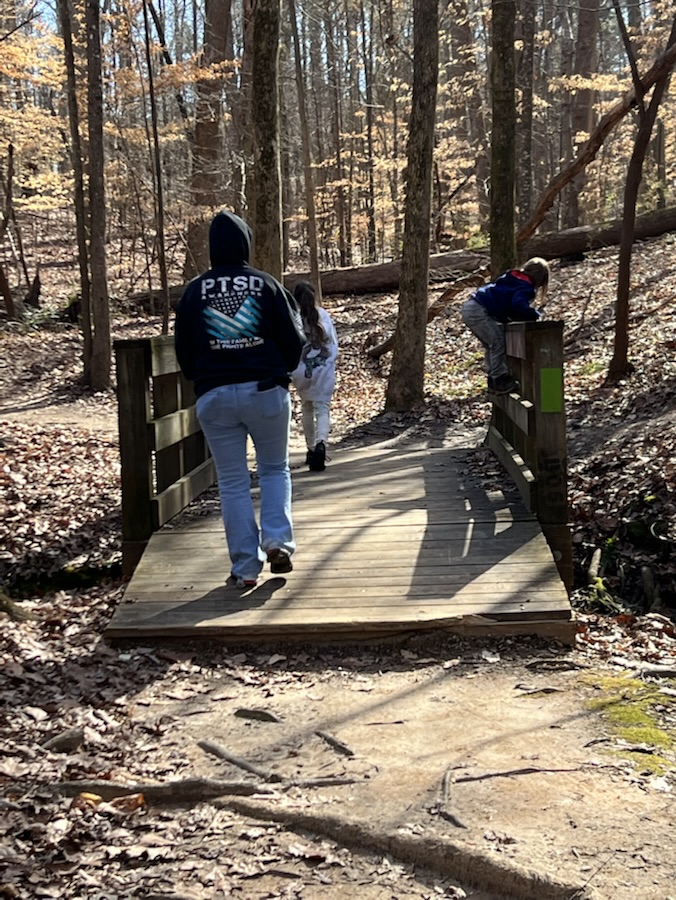 Coleman wearing a RED South Carolina Gamecocks shirt while hiking on the North Steele Creek Trail