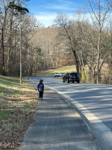 There are times Coleman and I run across traffic as we walk to our destination or Trailhead. On Saturday we had to walk along a few different roads (some with sidewalks and some without sidewalks) to reach our intended destination to begin our hike for the day.