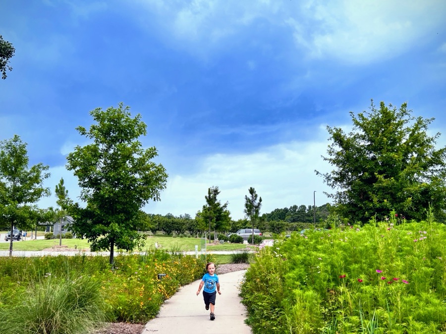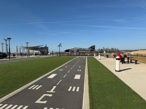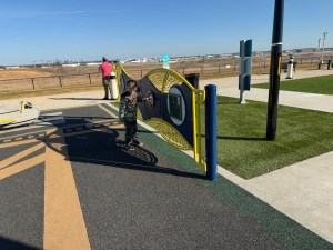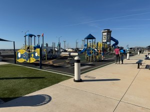 This New CLT Airport Overlook has two (2) age-specific playgrounds with shaded areas. Of course, being at the airport, the playgrounds have an airport theme including runway, a cargo transport vehicle, and a mini air traffic control tower.
