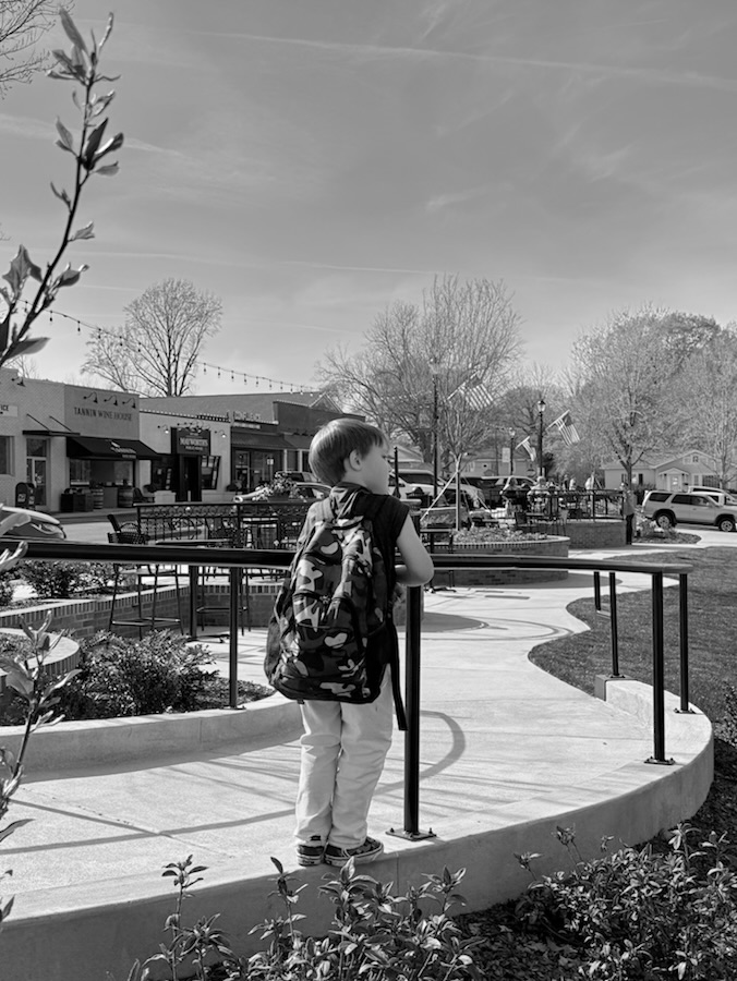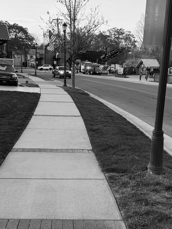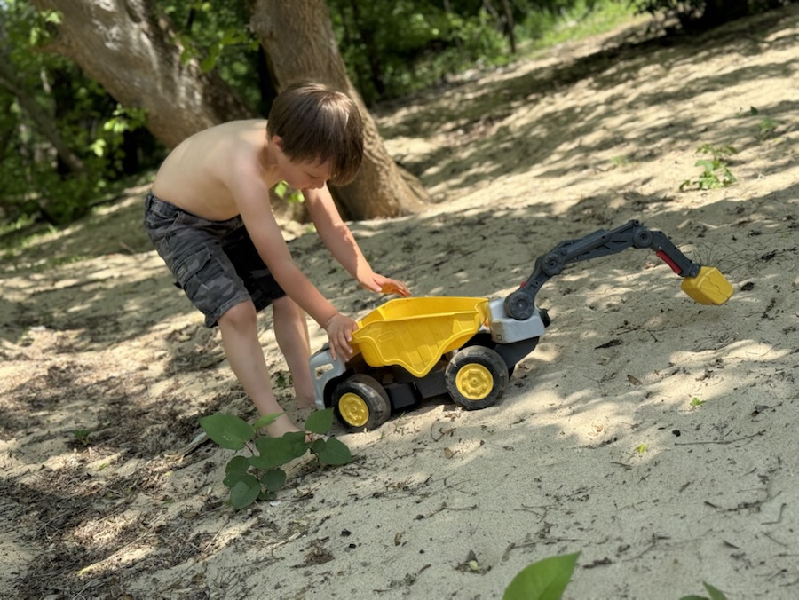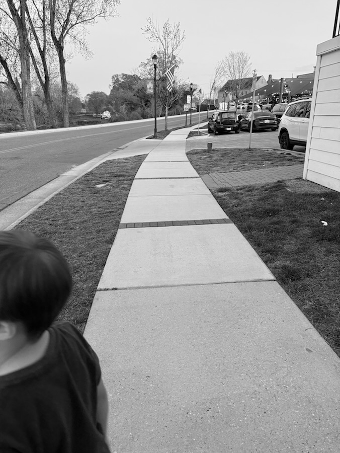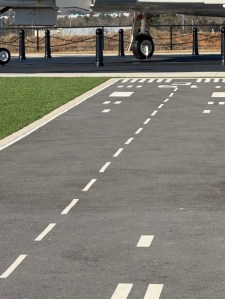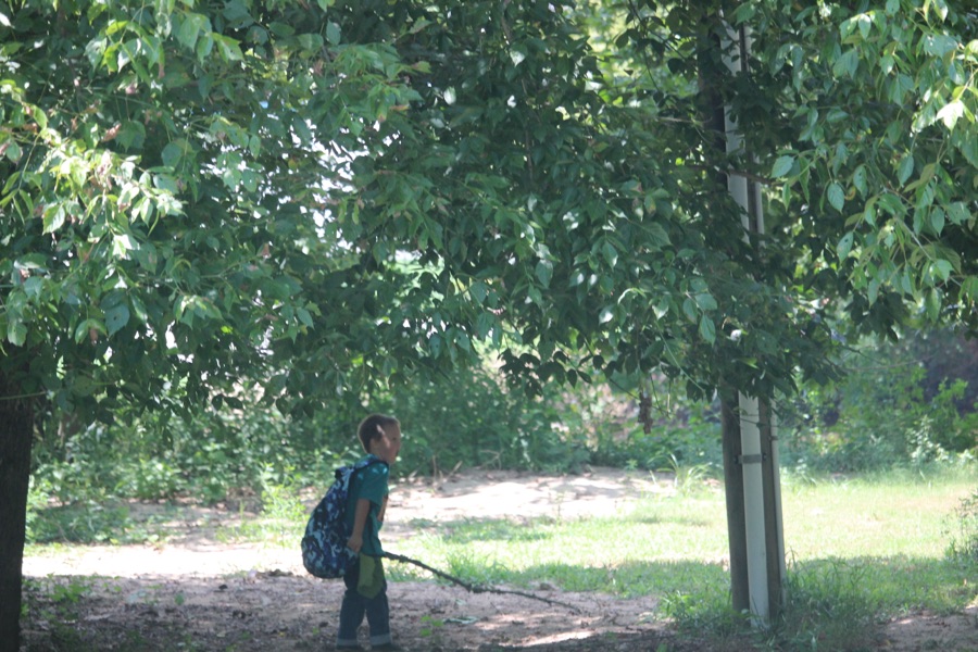 Moving on, time to permit a bit of playtime for Coleman. Notice the black lines formed by the playground equipment.