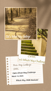 Many of you may not know that while Cee has been under the weather, I have been continuing the Which Way Challenge. I have recently officially taken over Cee’s Which Way Challenge. I will continue the Which Way Challenge with a theme each week. For now, I will be leaving it as CWWC, but may change it later if I feel it to be for the betterment. I will try to begin posting the upcoming themes in the coming weeks.