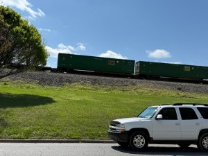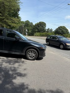 The weather being hot and humid, we are reading to head towards home. Guess what? The sidewalk and parking lot are all filled with (yes, that’s right) lines.