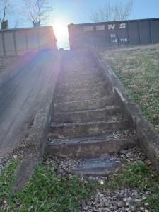 Two Sets of Stairs to travel into Town Stairs leading to Inaccessible Railroad Tracks Cramerton, North Carolina