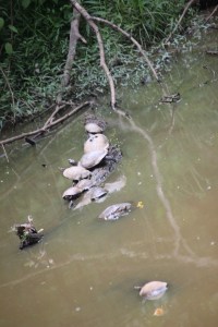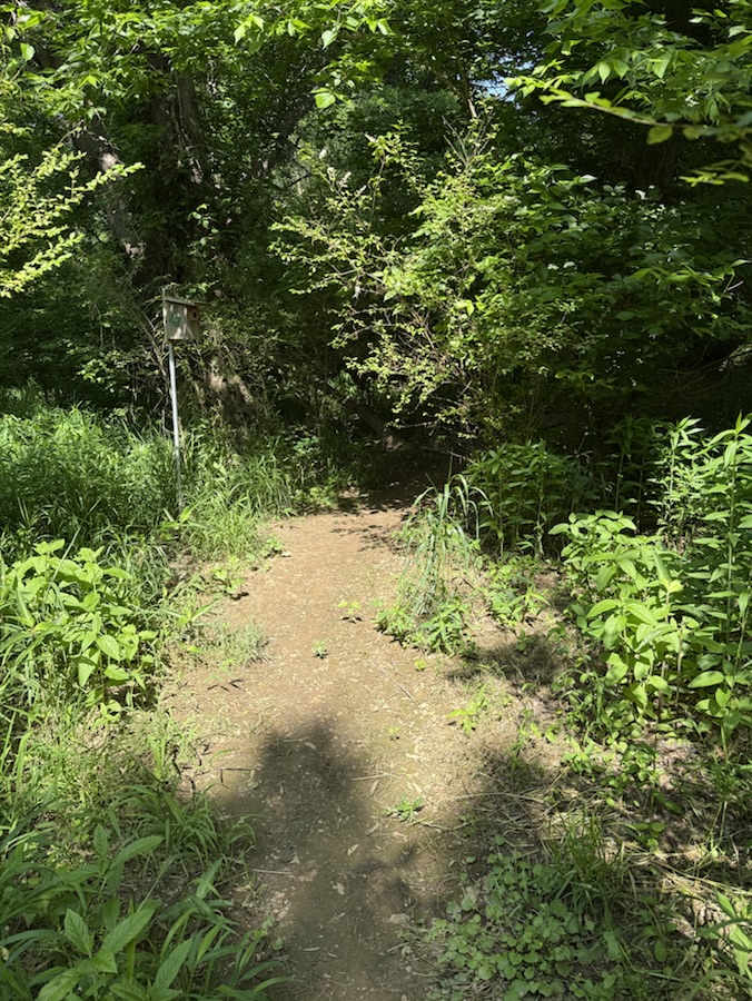 We walked down the road towards Goat Island Park and Greenway where we started hiking along Riverlink Greenway. After hiking merely a short distance along the trail, Coleman spotted several Cricket frogshopping and jumping. Their jumping style is unique due to the fact that they perform a series of jumps and “belly flops” as they move across the water or land (as we observed).