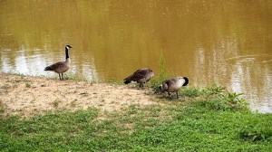 Canada Geese are quite often spotted on the banks or in the waters of the South Fork Catawba River. These are just a few of the trio shots, mostly I captured the large number (about a dozen or more) of CanadaGeese along the river’s banks.
