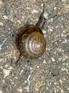 As we kept moving forward Coleman noticed this small Land Snail crawling across the trail …