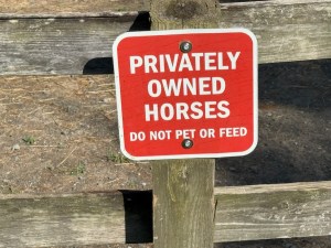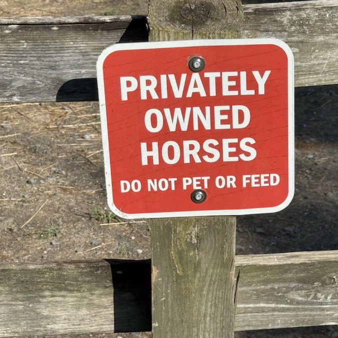 The trail pathway is long, we did not go all the way on the trail as the recent thunderstorms created significant puddles and muddy areas. Remember signs are always welcome like this Privately Owned Horses … Do Not Pet or Feed sign.
