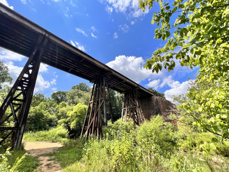 This Bridge was barricaded declaring it was unsuitable and hazardous rendering it off-limits to hikers/pedestrians.